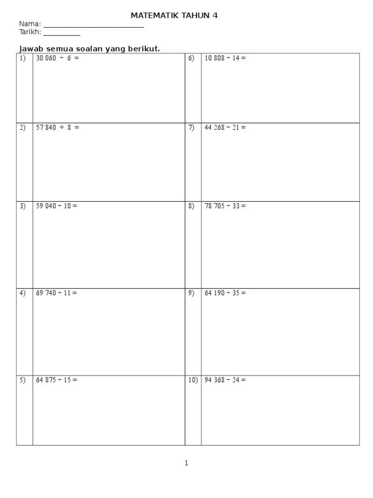 Soalan Matematik Bahagi Tahun 6. 107, tahun 5 matematik : Latihan pecahan tahun 6 (operasi darab & bahagi).